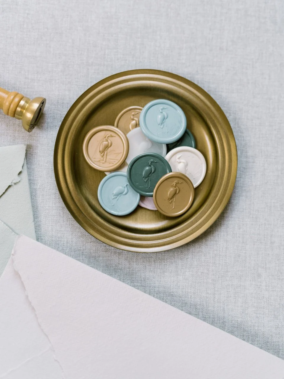 I was fortunate enough to work with my dear friends to create some styled images using the Heron wax seal. While I enjoyed styling the photos shown earlier (and creating the suite for it), I love the vibe that they captured for the same stamper—showing off how versatile it is and how effortlessly the Heron stamper can shift from one scene to another and still show off.